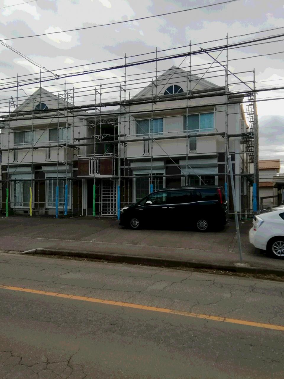 やっと暖かくなって来そうです つくば市で塗装していたアパートの一つが終わり足場を解体しました 次の月曜日に残り一つも解体予定です 当社では次の工事も始まっています いつも忙しいです どなたか当社に入って一緒に仕事をしませんか 張り合いがありますよ ホームページに募集の案内があります